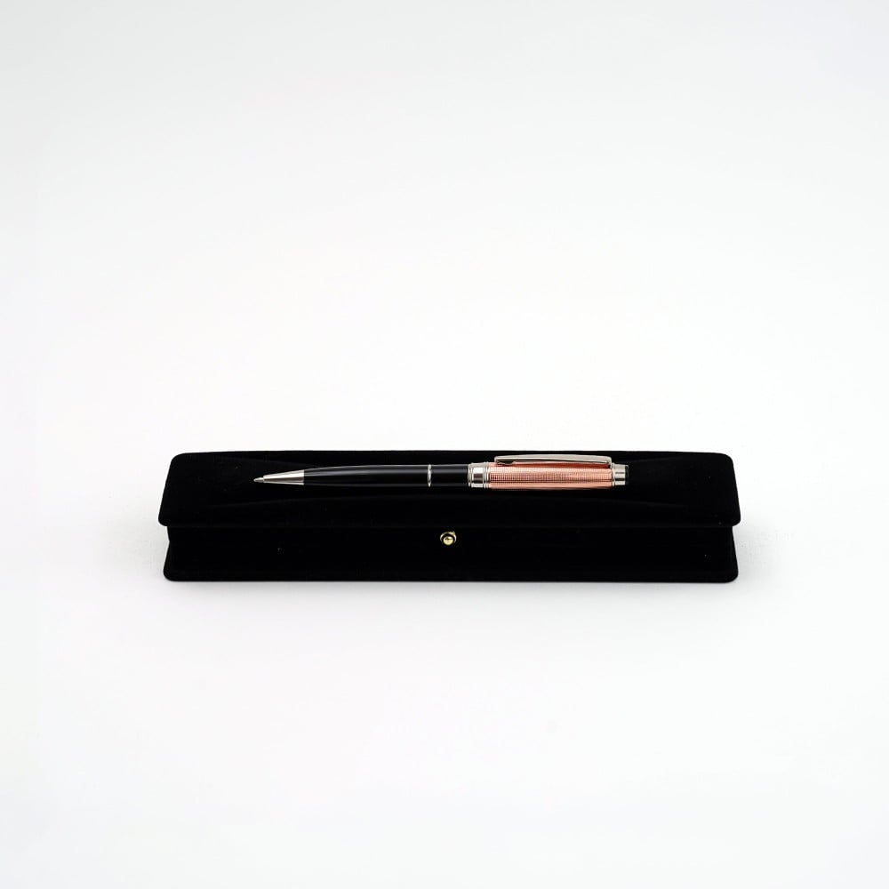 كشخه حتى في قلمك، خلك مميز في اختياراتك، قلم فاخر باللون الأسود الملكي، مصممة ليلائم مكتبك وجيبك فين ماتروح. يوفر هذه القلم أداء سلس وكتابة ناعمة، مما يجعله مثالي للأشخاص الذين يحرصون على تجربة كتابة مميزة. اجعل الكتابة تصبح لحظة من المتعة والتميز مع هذا القلم الفاخر.